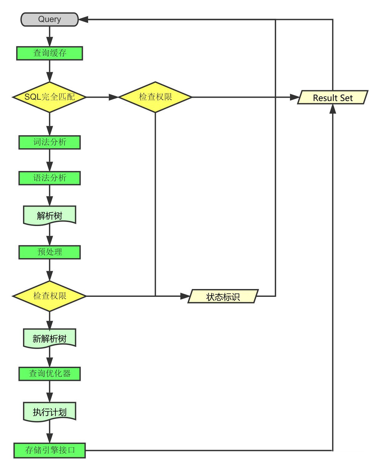 2.1先查询缓存,检查Query语句是否完全匹配,接着再检查是否具有权限,都成功则直接取数据返回