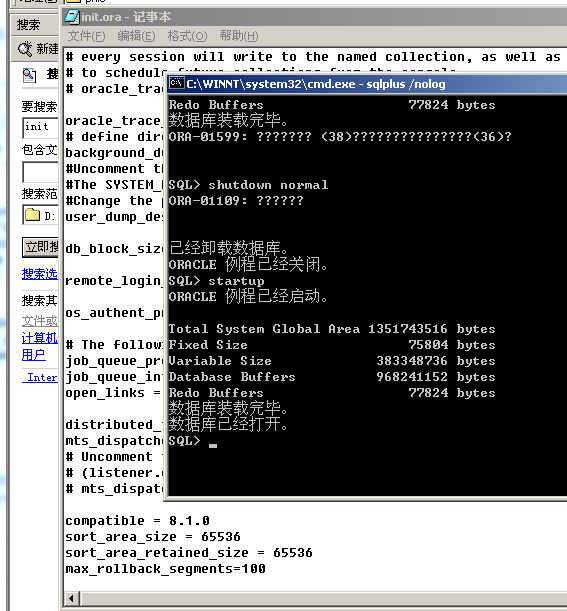 在Orale数据库中,存在一个初始化参数max_rollback_segments,它代表了同时能够online的回滚段的个数。它的缺省值是max(30,TRANSACTIONS/TRANSACTIONS_PER_ROLLBACK_SEGMENT)。当初始化参数中指定(通过rollback_segments参数)或者缺省online的回滚段个数超过max_rollback_segments这个参数后数据库无法启动。这个错误往往是由于用户在增加了回滚段之后只是修改了rollback_segments参数但没有修改max_rollback_segments参数导致的。或者用户增加了public回滚段,同时在初始化参数中注释掉了max_rollback_segments参数也会导致这个问题。