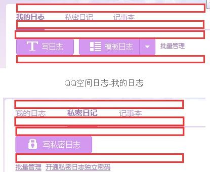 即注意相同系列页面、页签布局一致性。是说的是同一系列页面中同类元素和模块的样式、间距一般要相同;同一个tab下,不同选项对应 的页签中同类元素和模块的样式、间距一般要相同。例如下图QQ空间-日志页面里我的日志和私密日记tab中,红框圈出的位置高度是否一致。