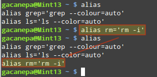运行 alias 命令可以确定 rm 现在已经被别名了: