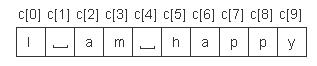 c[0]=′I′;c[1]=′ ′;c[2]=′a′;c[3]=′m′;c[4]=′ ′;c[5]=′h′;c[6]=′a′;c[7]=′p′;c[8]=′p′;c[9]=′y′;