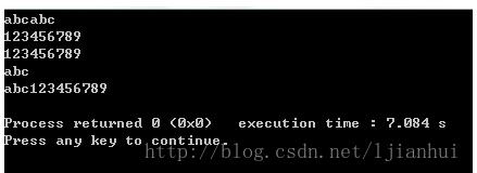 注:本人认为,如果一个字符串对象做了一次+=运算,那么它很可能会很快做第二次,所以在分配内存时,我采用了预分配的策略,每次分配都分配连接完成后的字符串的长度的1.5倍。这样当下一次执行+=时,字符数组可能有足够多的容量来保存连接后的字符串,而不用重新分配和复制。而且我们注意到,当调用+=一次之后,*_used肯定为1,即下次运行+=时,是极有可能直接加到字符数组的后面的。