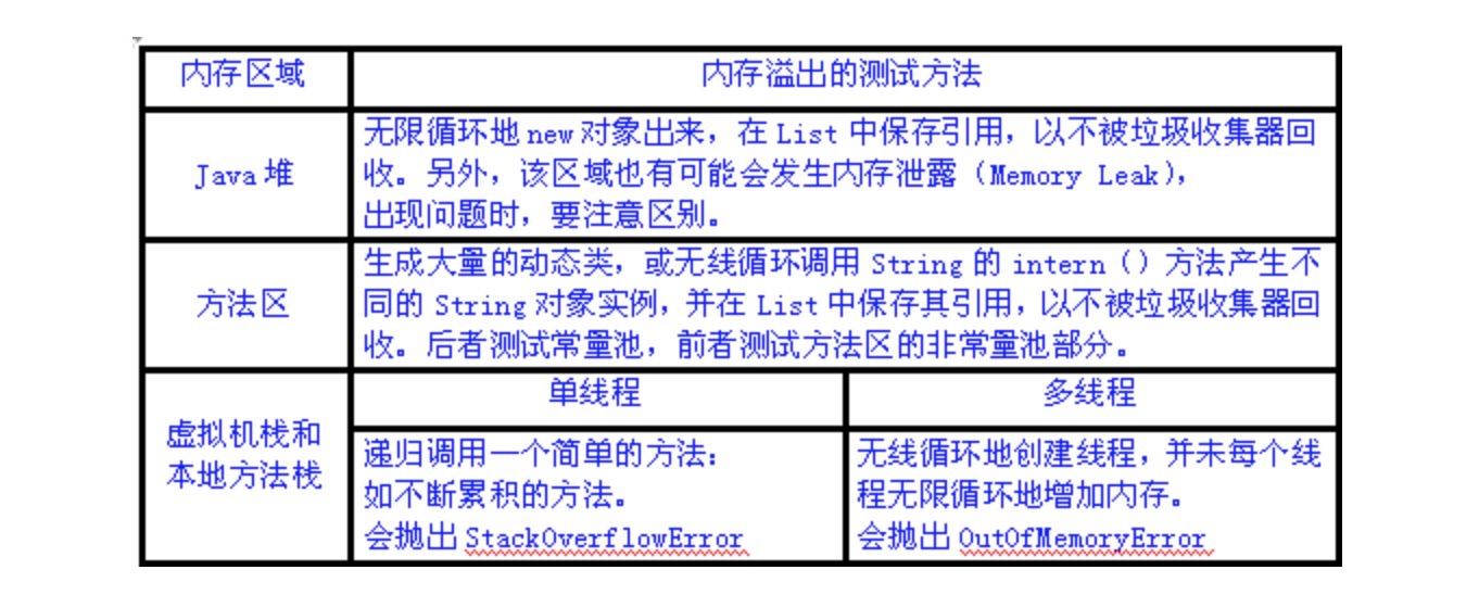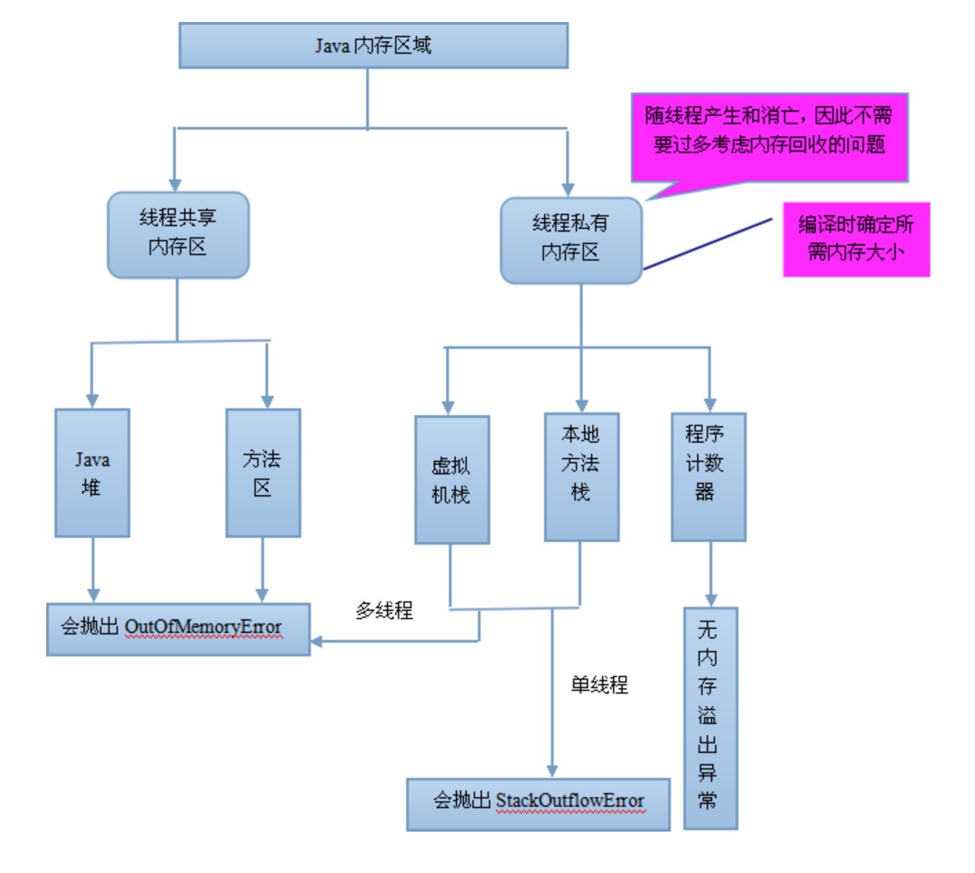 这两种情况存在着一些互相重叠的部分:当栈空间无法继续分配时,到底是内存太小,还是已使用的栈空间太大,其本质只是对同一件事情的两种描述而已。其本质上只是对一件事情的两种描述而已。在单线程的操作中,无论是由于栈帧太大,还是虚拟机栈空间太小,当栈空间无法分配时,虚拟机抛出的都是StackOverflowError异常,而不会得到OutOfMemoryError异常。而在多线程环境下,则会抛出OutOfMemory异常。