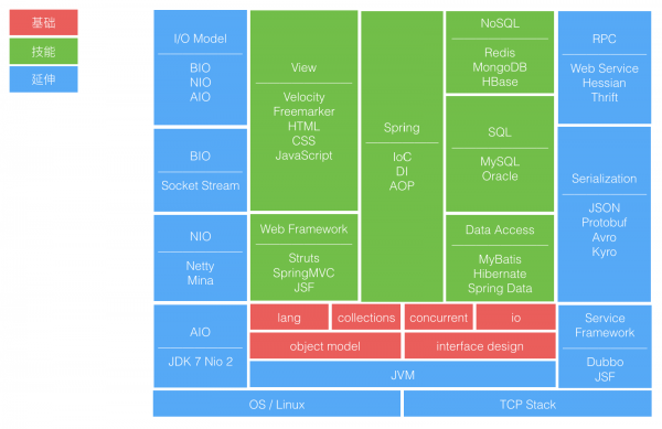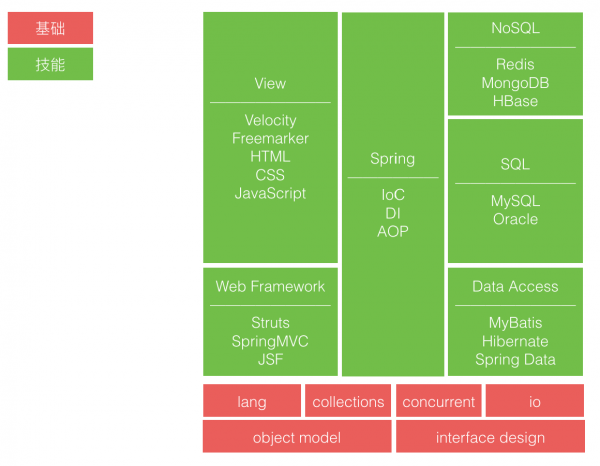 所以,基础像内功、框架如兵器、运用为招式,存乎一心、运用之妙,三者融会贯通,则已可在 Java 世界纵横一方。 如上所述,基于此我们有了第二张地图。