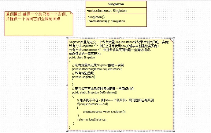 老鸟:你傻啊,当然是在类里面创建了(注:这样定义私有构造函数是上面的一个思考过程的,要创建实例,自然要有一个变量来保存该实例把,所以有了私有变量的声明,但是实现中是定义静态私有变量,朋友们有没有想过——这里为什么定义为静态的呢?对于这个疑问的解释为:每个线程都有自己的线程栈,定义为静态主要是为了在多线程确保类有一个实例)
