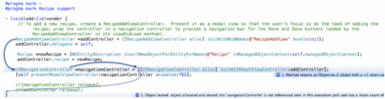 在对内存静态分析没有问题之后,需要使用 Instruments 这个工具对内存进行动态扫描了。在 Xcode 中选择 Product>Profile,编译程序并唤起 Instruments,选择 Leaks 模板,操作页面,查看程序是否有内存泄露。
