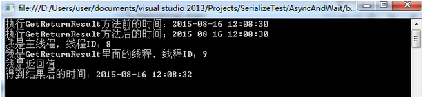 Console.WriteLine("我是GetReturnResult里面的线程,线程ID:"+Thread.CurrentThread.ManagedThreadId);
