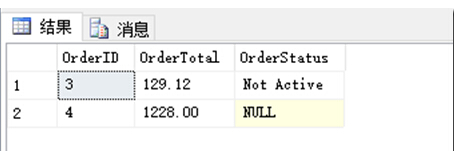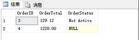 在下面这个查询中,where子句中使用not in来过滤数据,where子句的条件是OrderStatus not in ('Active','InActive'),我们期望结果集中包含orderstatus为'Not Active'、'NULL'这两行的数据。