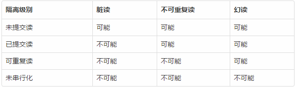 幻读(Phantom Read):A 事务对一个表中的数据进行了修改,这种修改涉及到表中的全部数据行。同时,B 事务也修改这个表中的数据,这种修改是向表中插入一行新数据。操作 A 事务的用户发现表中出现了 B 事务插入的行,好象发生了幻觉一样。