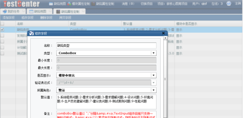 路径:系统设置---缺陷属性定制(类型有ComboxBox/Date/TextInput,根据实际需要选择,拷贝字段可以选择其他项目的属性哦)