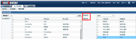 角色权限都添加好后,可以使用啦,下面可以看一下在组建项目团队时,要新增一个用户,可以选择新增加的角色和功能了,看图↓