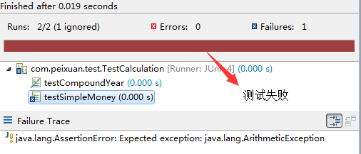 测试这个方法是因为可能会出现除零错误, 通过annotation中的expected测试, 如果出现ArithmeticException, 则表示测试通过 :
