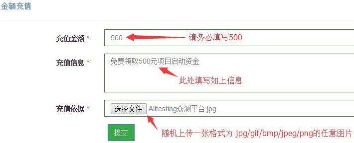 ②充值信息(请填写“免费领取500元项目启动资金”)
