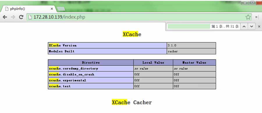 再重新启动Apache。在phpinfo页面可以看到xcache相关配置。例如以下图所看到的: