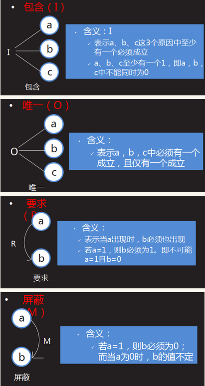 所有输入条件的相互制约关系以及组合关系输出结果对输入条件的依赖关系,也是什么样的输入组合会产生怎样的输出结果,即“因果关系”。