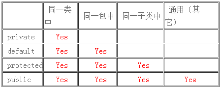 2. 属性和方法的访问控制符有四种:private, default, protected, public