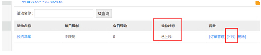 7、创建活动默认为上线状态;操作点击上下线不生效