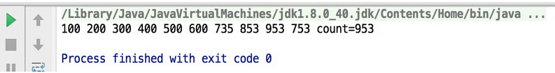 上述代码的目的是对count进行加一操作,执行1000次,不过这里是通过10个线程来实现的,每个线程执行100次,正常情况下,应该输出1000。不过,如果你运行上面的程序,你会发现结果却不是这样。下面是某次的执行结果(每次运行的结果不一定相同,有时候也可能获取到正确的结果):