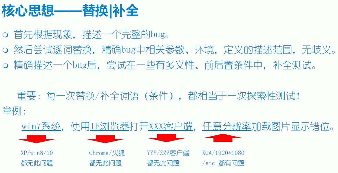 重要:每一次替换/补全词语(条件),都相当于一次探索性测试!