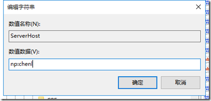 双击打开ServerHOST属性,在“数值数据”下填入np:servername