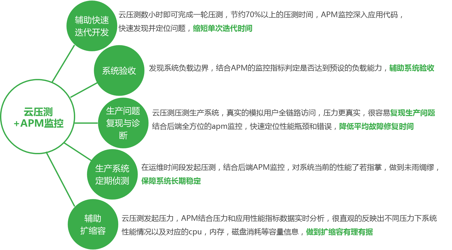 云压测和 APM 结合,全链路全业务接口压力测试,全面覆盖前后端所有环节真正实现端到端性能优化解决方案,全方位提升用户体验。
