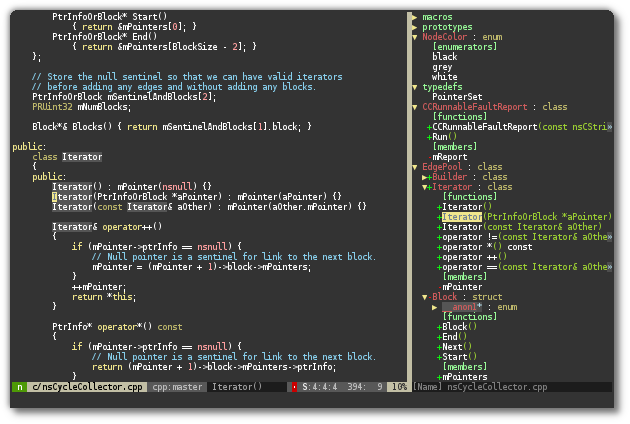 tagbar是一个taglist的替代品,比taglist更适合c++使用,函数能够按类区分,支持按类折叠显示等,显示结果清晰简洁。