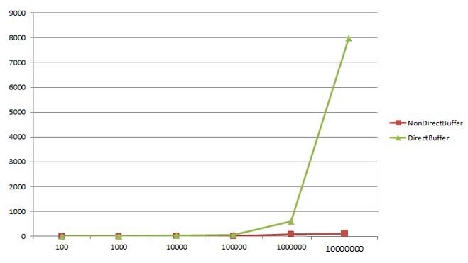 可以看到直接内存在直接的IO操作上,还是有明显的差异的!