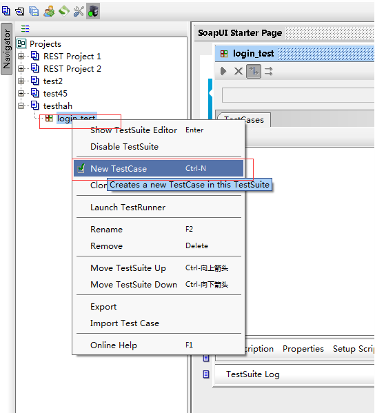 b、创建测试用例,选中测试组名称右键新建测试用例,如下图: