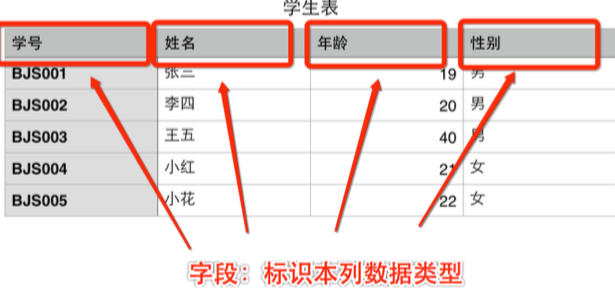 字段:表的"列"称为"字段",每个字段包含某一专题的信息