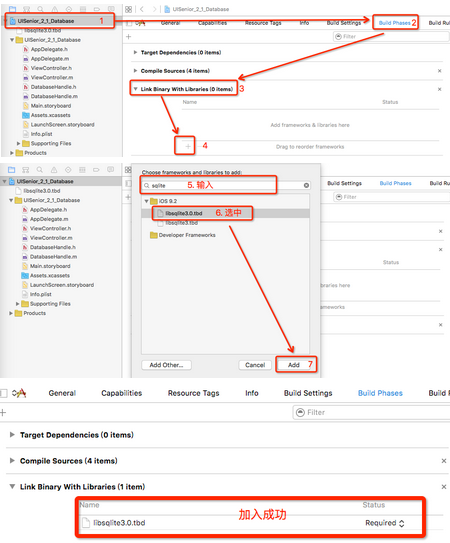 SQLite(http://www.sqlite.org/docs.html)是一个轻量级的关系数据库。 SQLite初的设计目标是用于嵌入式系统,它占用资源非常少,在嵌入式设备中,只需要几百K的内存够了,目前应用于Android、iOS、Window Phone等智能手机。iOS使用时SQLite,只需要加入libsqlite3.0.tbd依赖以及引入sqlite3.h头文件即可。