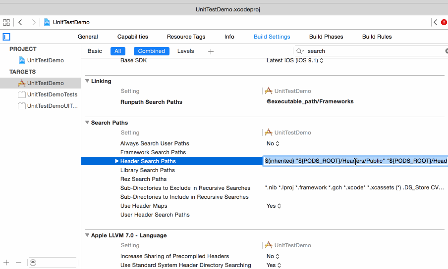 这时会发现AFNetworking根本没法在单元测试里使用,因为没有找到库,所以我们需要配置一下: