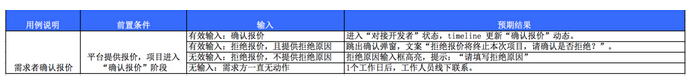 应用到我们客栈一个很小的功能测试用例,则体现如下:需求者确认报价