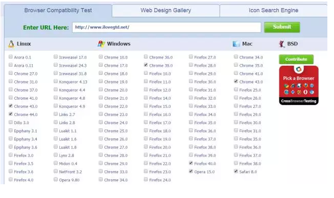 另外一款测试网页外观效果的在线网站,不过专门针对IE浏览器,支持IE 5.5 到IE 11所有版本。