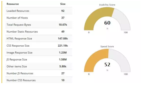 而且贴心的是提供详细测试数据结果,比如网页易用性/访问速度分数,网站使用插件数和字体是否可读等详细测试结果。