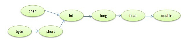 接下来,我们讨论一下数据类型转换相关知识。数据类型转换分为自动转换和强制转换,自动转换的关系如下图: