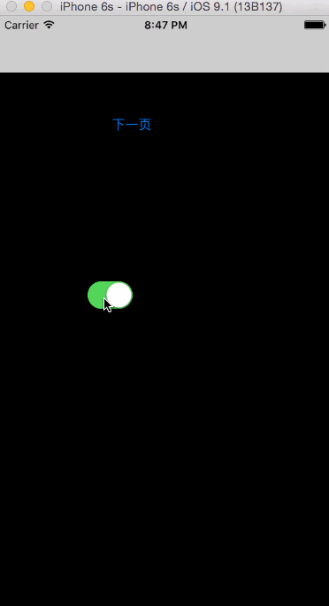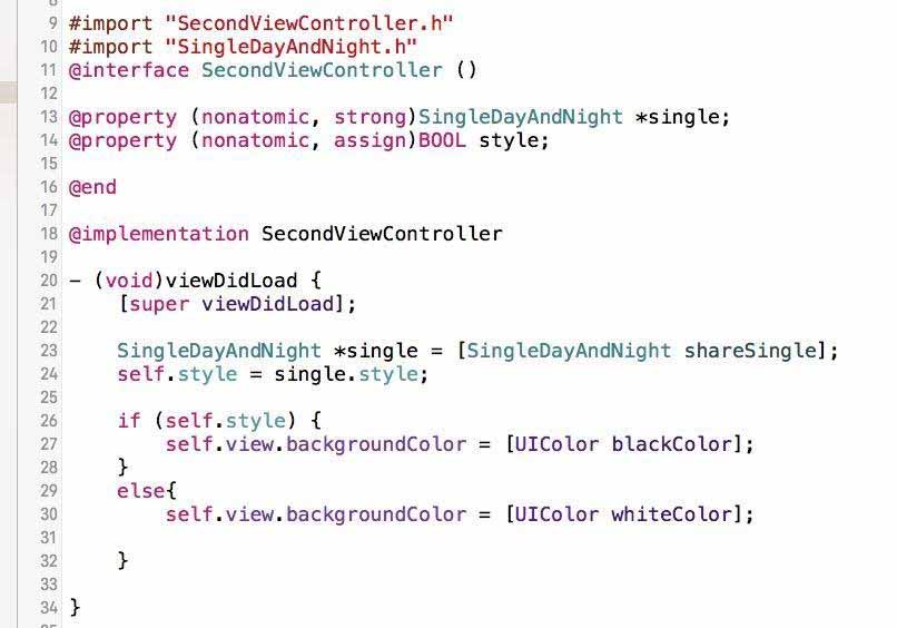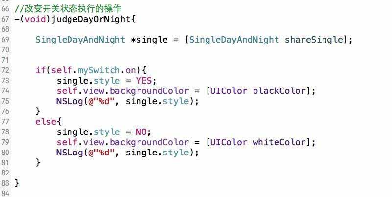 在这里创建单例对象.判断, 当开关打开状态时候,把单例里的style属性设置为YES,并改变当前页的背景色,反之,把单例里的style属性变为NO.