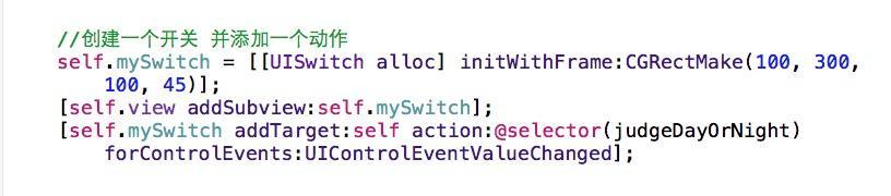 然后在一个ViewController里创建一个开关,给开关设置点击方法.