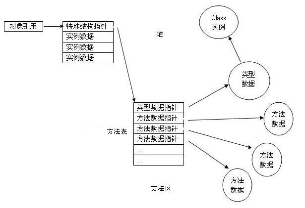 Java对象中包含的基本数据由它所属的类及其所有超类声明的实例变量组成。只要有一个对象引用,虚拟机必须能够快速地定位对象实例的数据。另外,它也必须能通过该对象引用访问相应的类数据(存储于方法区的类型信息),因此在对象中通常会有一个指向方法区的指针。当程序在运行时需要转换某个对象引用为另外一种类型时,虚拟机必须要检查这种转换是否被允许,被转换的对象是否的确是被引用的对象或者它的超类型。当程序在执行instanceof操作时,虚拟机也进行了同样的检查。所以虚拟机都需要查看被引用的对象的类数据。