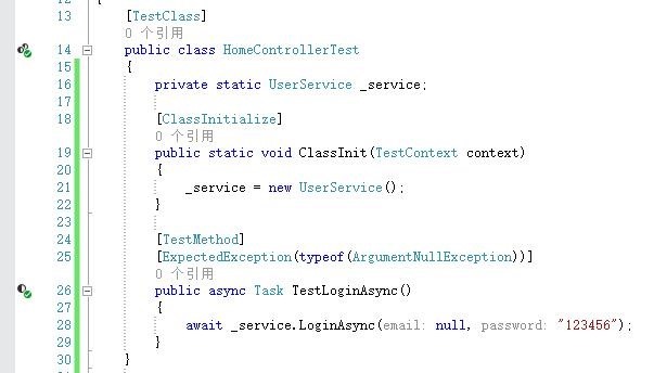 在之前 WPF、ASP.NET 中,单元测试要捕捉指定异常,我们是通过 ExpectedExceptionAttribute 来实现的。如下图: