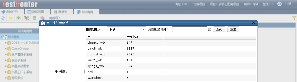 路径:测试构建---测试用例---提交用例统计(选中用户输入时间可以啦)