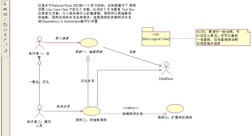 一,用例可以有抽象用例和一般用例,抽象的用例图里面的文字是倾斜的。