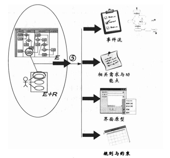 第三个阶段是填充细节阶段,该阶段的任务是填充每个用例的实现细节,以便于开发人员进行具体的实现。往往产品人员在考虑需求范围的时候只考虑到功能性需求,在这个阶段要对非功能性需求以及设计约束进行更细致的补充。这个阶段的任务是对用例模型、领域模型标示出用例、领域类的细节进行填充。对于组织行为需求的用例,我们要填充用例的事件流;对于组织数据(结构)需求的领域类,我们要填充它的字段与格式。很多产品人员在归纳用例的时候会采用“先人后事”的思路,这种方式很容易陷入误区。我们应该讲人(角色,参与者)和事(场景,用例)分开考虑,在确定他们的关联时,要先事后人地考虑。用例说明可以分为两个层次,第一个层次重点关注业务活动的变化以及其中的约束条件,另外一个层次是交互/界面在视觉层次上的建模和细化。这两个层次其实是纵深对应的关系,先考虑业务和规则,再考虑前端的交互和界面展示。在这个阶段不单单是对业务的考虑,同时前置条件,后置条件,基本事件流程,拓展事件流程,子事件流程都是用例的核心部分。