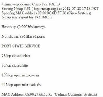 这是个更简单的技术,你可以伪造你的MAC(攻击者的MAC)地址。MAC地址欺骗造成了受害者检测提交来源困难的局面。Nmap可以每个扫描选择 一个完整的随机MAC地址,并且这些MAC地址都是基于不同厂商的,另外的设置是手工的指定MAC地址(通过这样,攻击者能够在相同网络中伪造一台计算机 地址)。Nmap有一个叫做