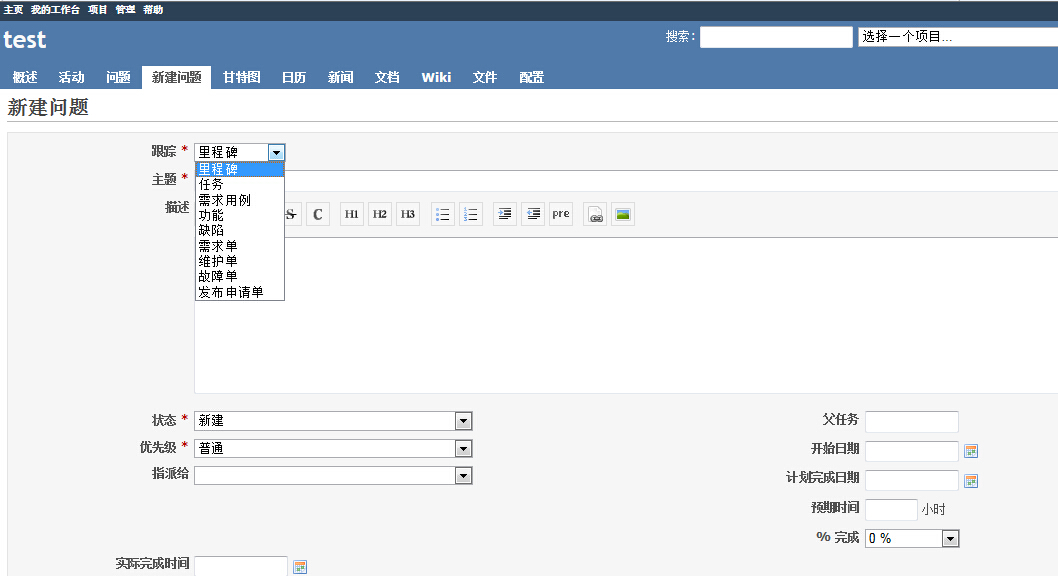 Redmine中创建项目与跟踪标签