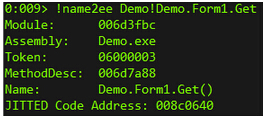 这里的地址(0x008c0640)可以通过MethodInfo.MethodHandle.GetFunctionPointer().ToPointer()方法获取
