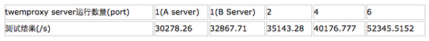 1.后端 Redis 节点数量不变,不同 Twemproxy server 测试及多个同时运行测试结果如下: