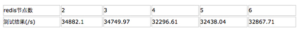 2.前端使用1个 Twemproxy server,后端 Redis 数量分别为2,3,4,5,6来进行压力测试,看测试结果,测试数据如下:
