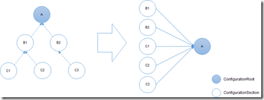 xxx组成配置树的ConfigurationRoot和ConfigurationSection不但自身封装和配置数据,配置节父子关系的维护也并不直接通过对象之间的引用关系来维系。如右图所示,对于一个表示配置树中某个非根配置节的ConfigurationSection对象来说,它仅仅保留着对根节点的引用,后者是一个类型为ConfigurationRoot的对象。当我们调用ConfigurationSection方法获取或者设置配置数据的时候,它会直接将调用请求转发给表示配置树根的ConfigurationRoot对象。