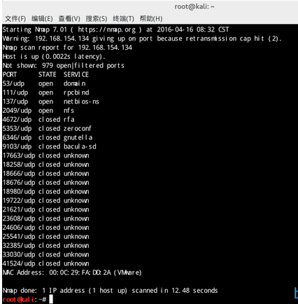 UDP扫描会评估目标系统上的UDP端口,可以确认UDP端口是开放还是被防火墙设备过虑。