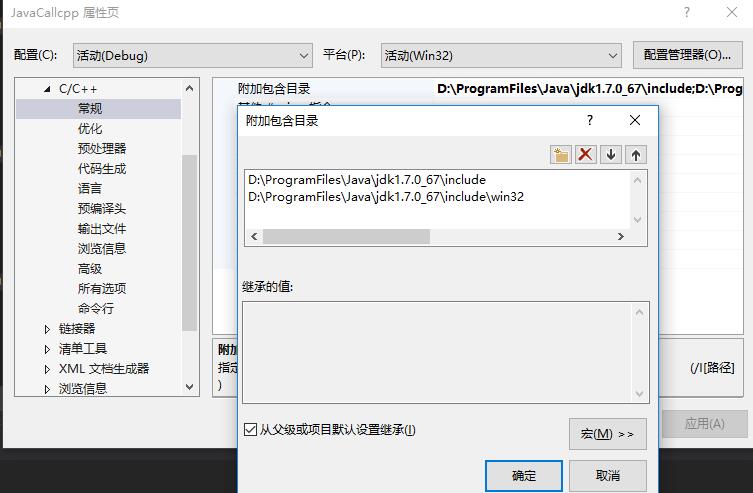(4)生成dll,在项目文件夹下的Debug文件夹内可以找到TestJNI.dll,但是因为我们在Java里要求dll名为JavaCallcpp,所以此时把项目重命名为JavaCallcpp,然后重新生成JavaCallcpp。【这一步生成会失败,按照如下添加路径】